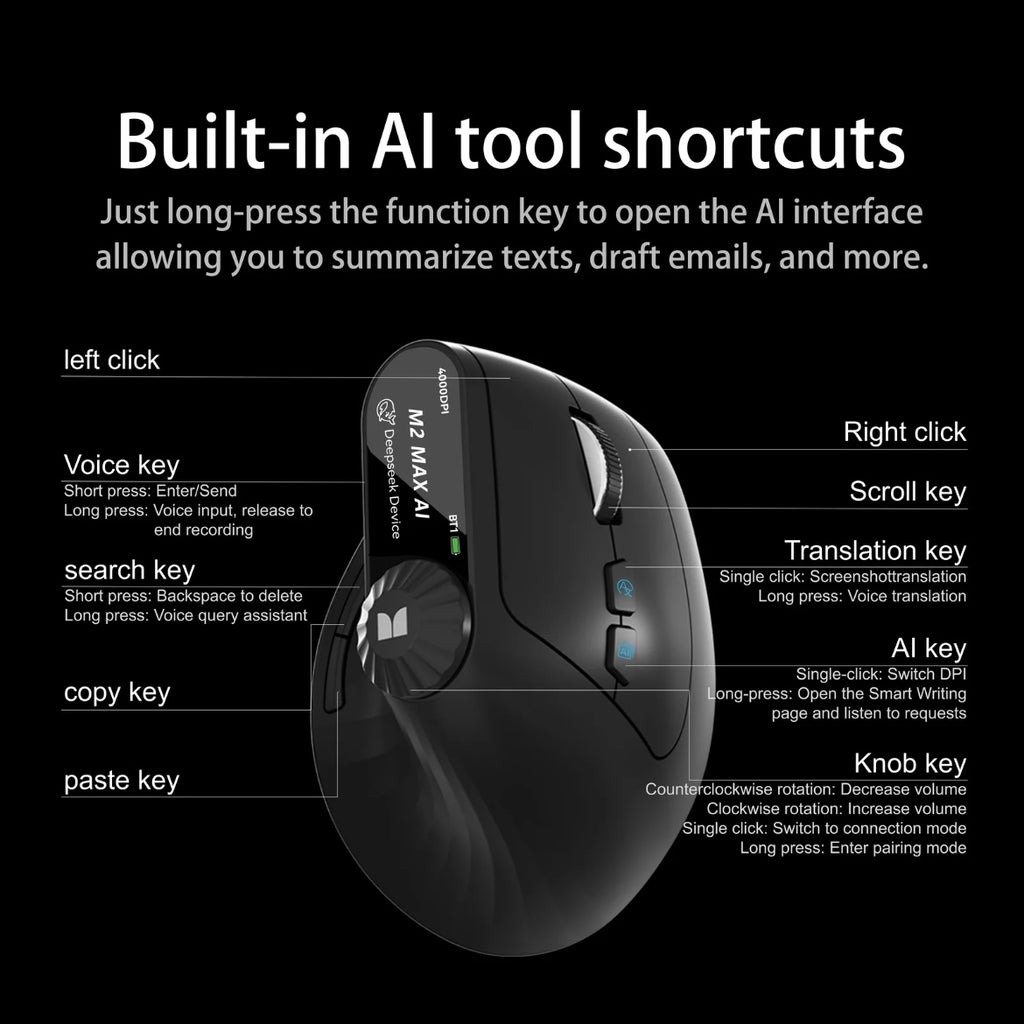 Airmars Ai ratón inalámbrico M2 MAX, ergonómico, vertical, 2,4G, Bluetooth, larga vida útil, para computadora de escritorio