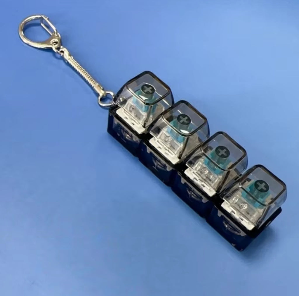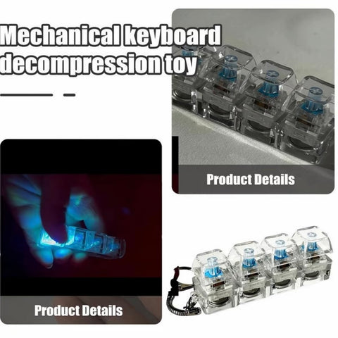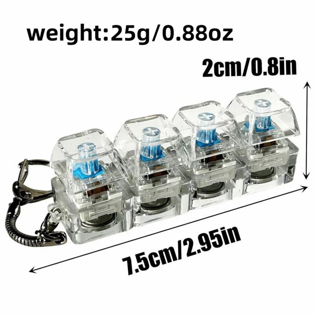 Juguete de teclado mecánico para aliviar el estrés, teclas de cristal con luces LED, diseño transparente, accesorio de llavero portatil