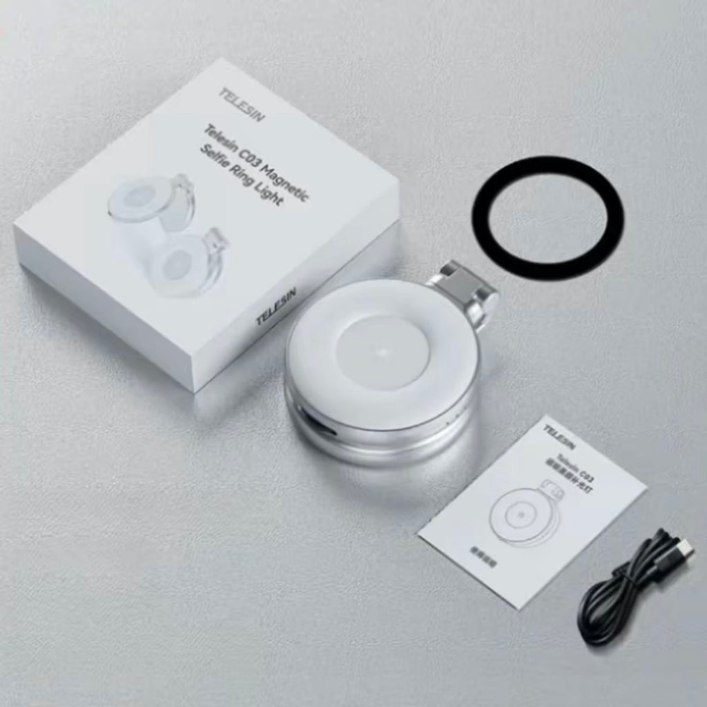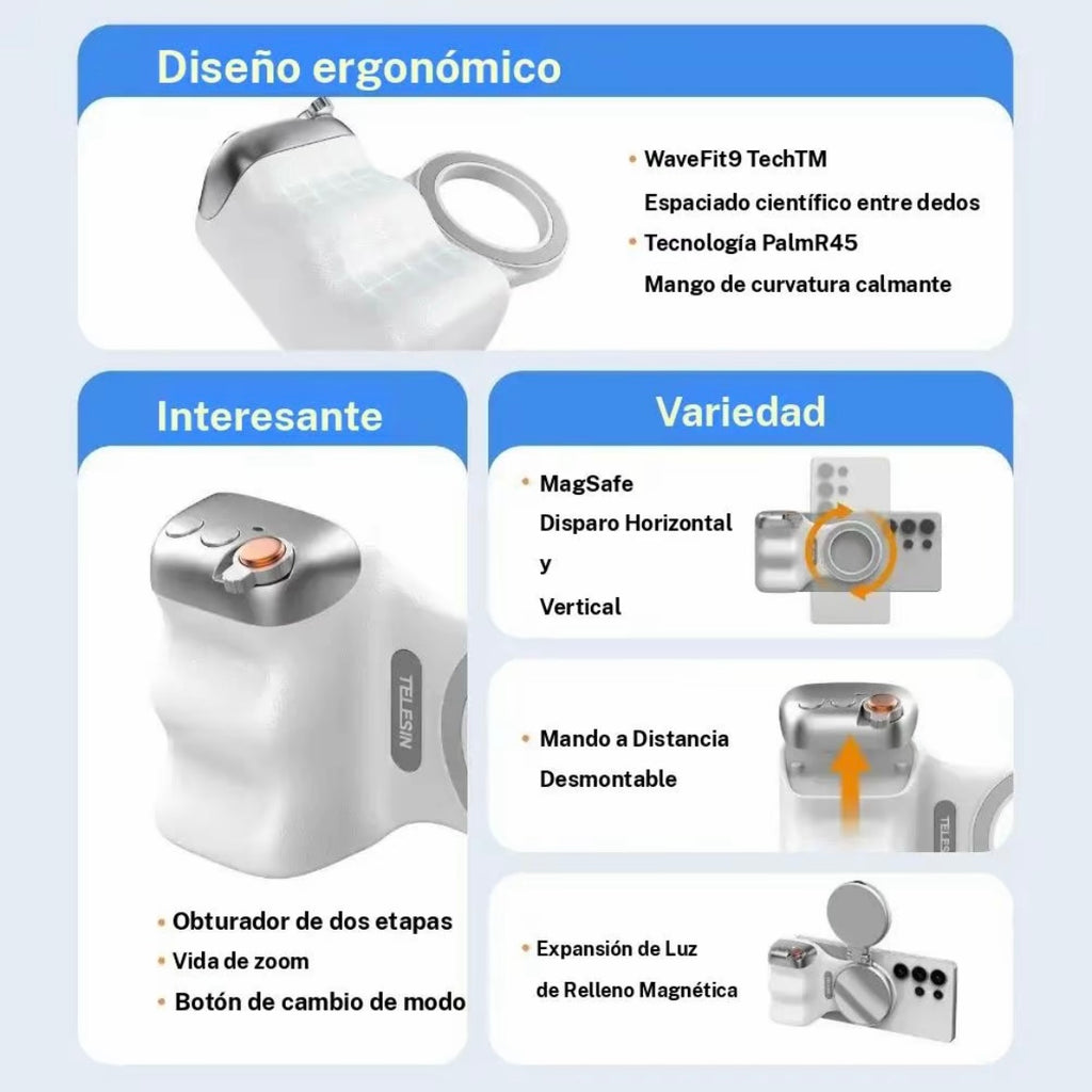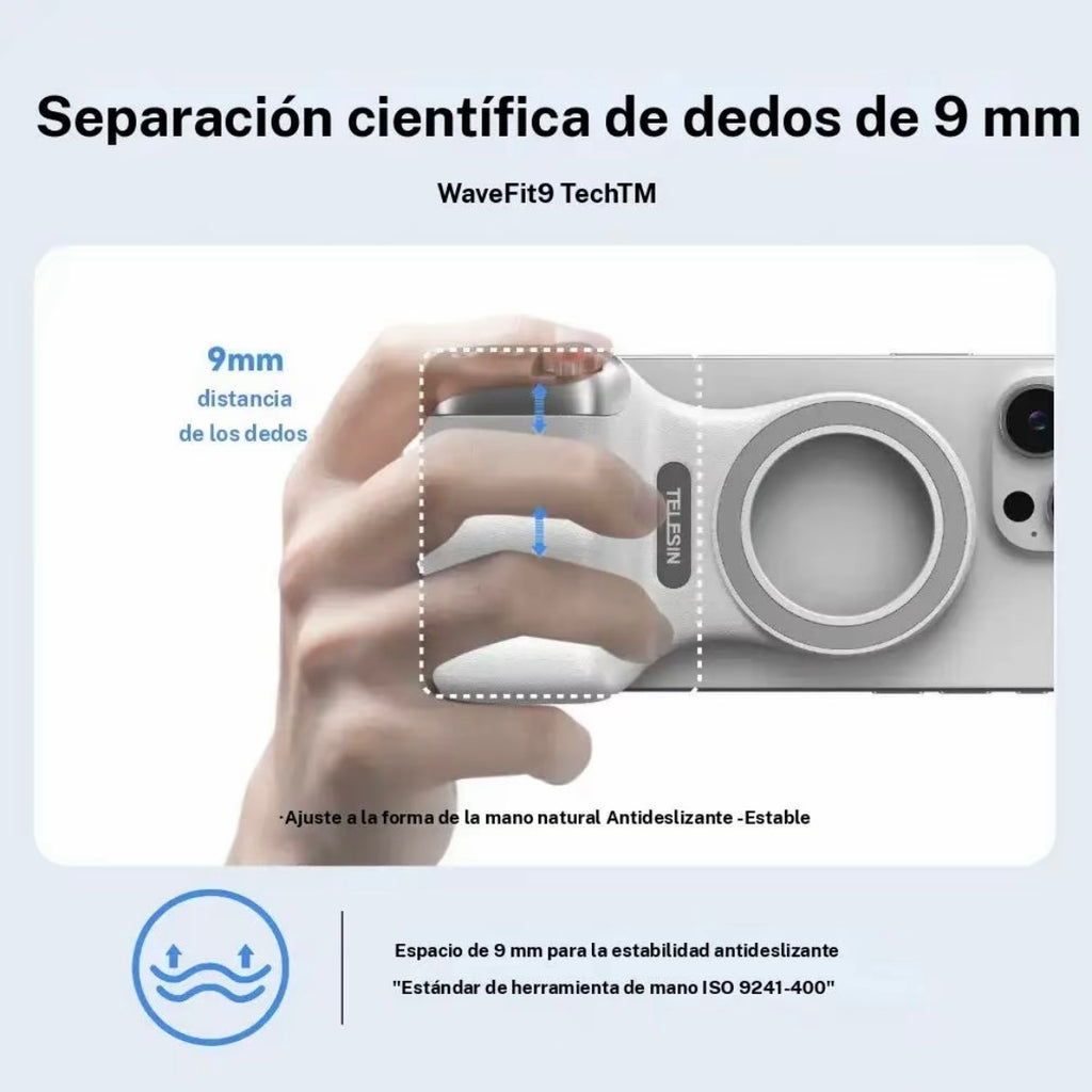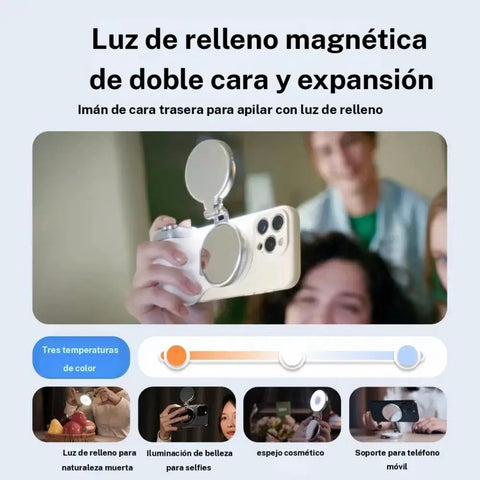 Mango de selfie magnético, mango de selfie c/ mando BT inalámbrico, estabilizador de mano con luz de relleno y trípode para iPhone y Android
