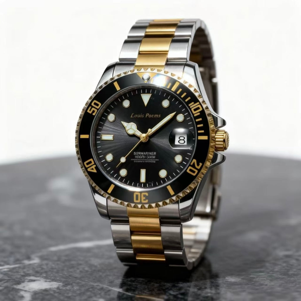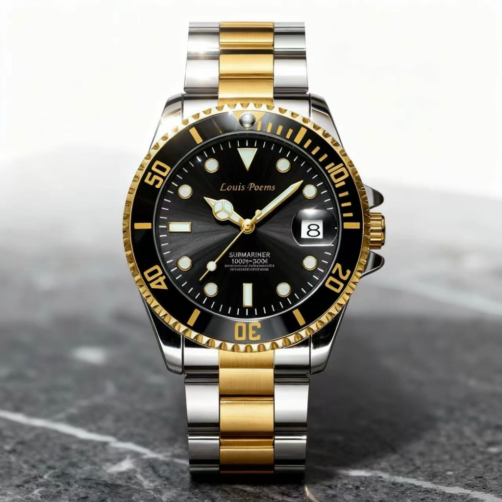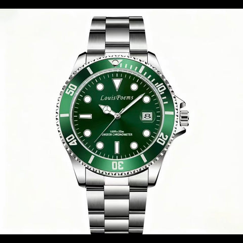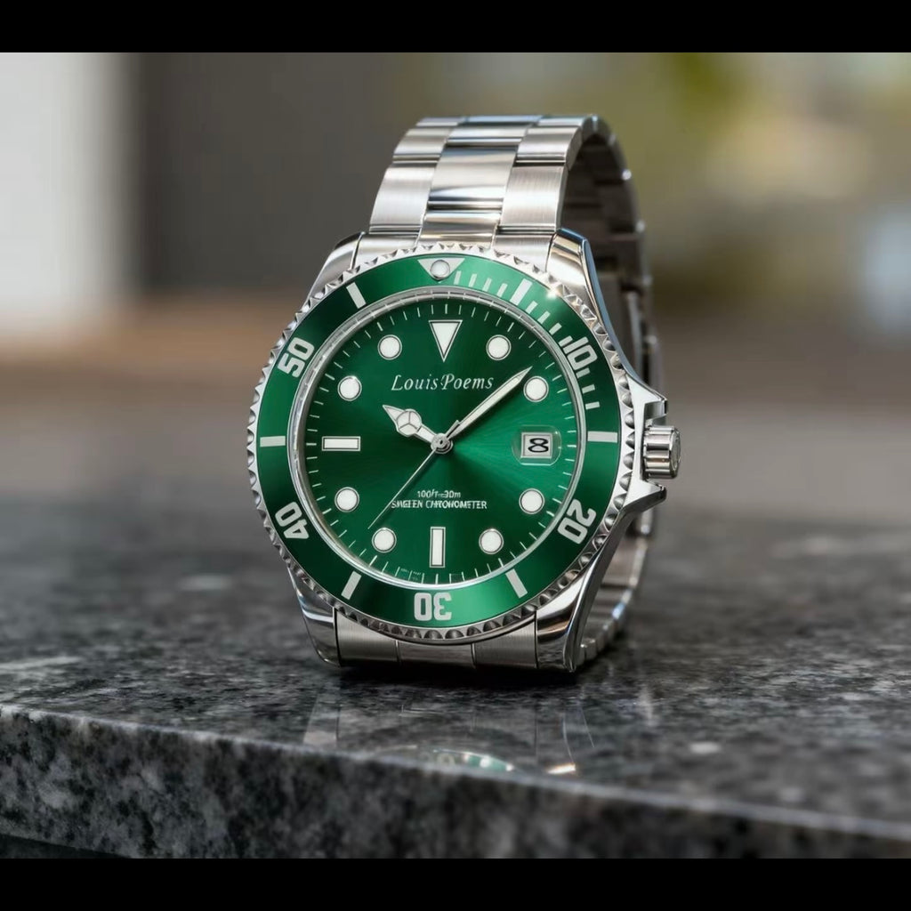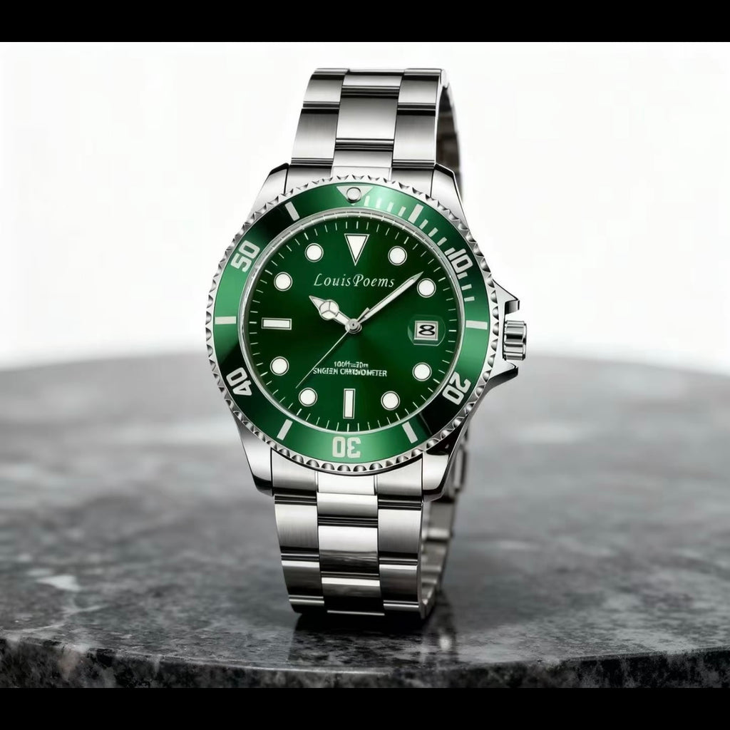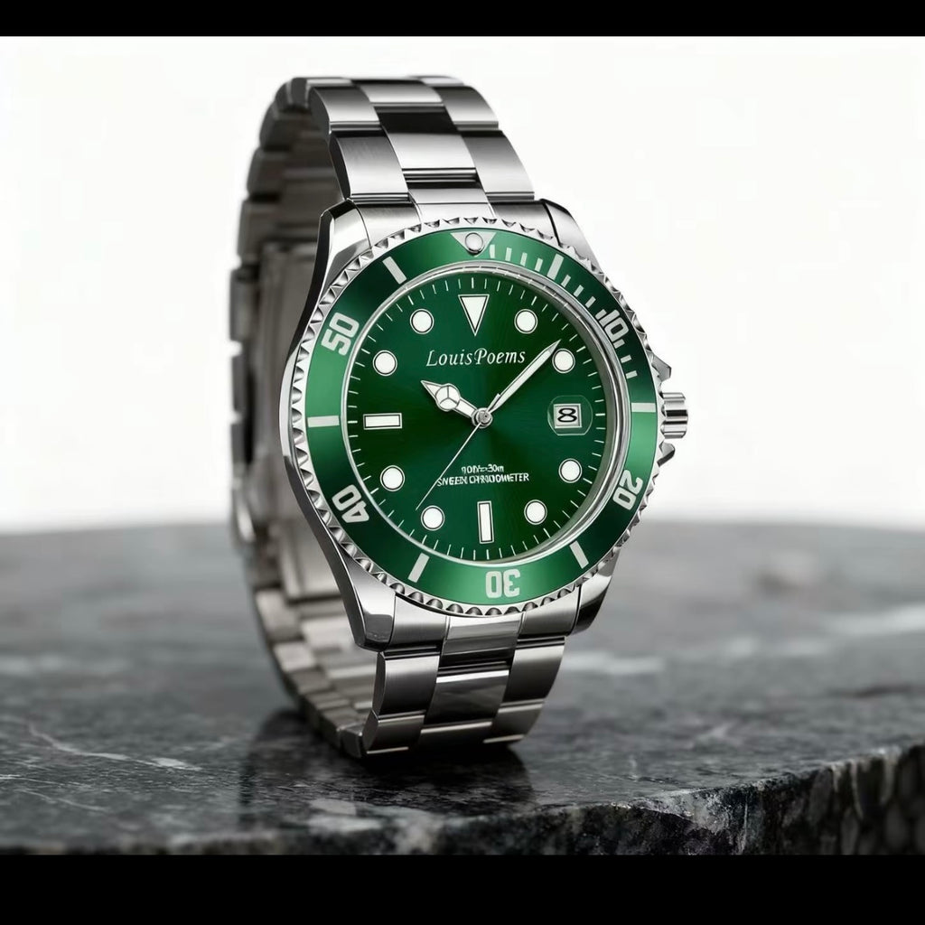 Louis Poems Green Water Ghost Reloj de negocios de lujo de alta gama, reloj de cuarzo impermeable totalmente automático para hombres de moda