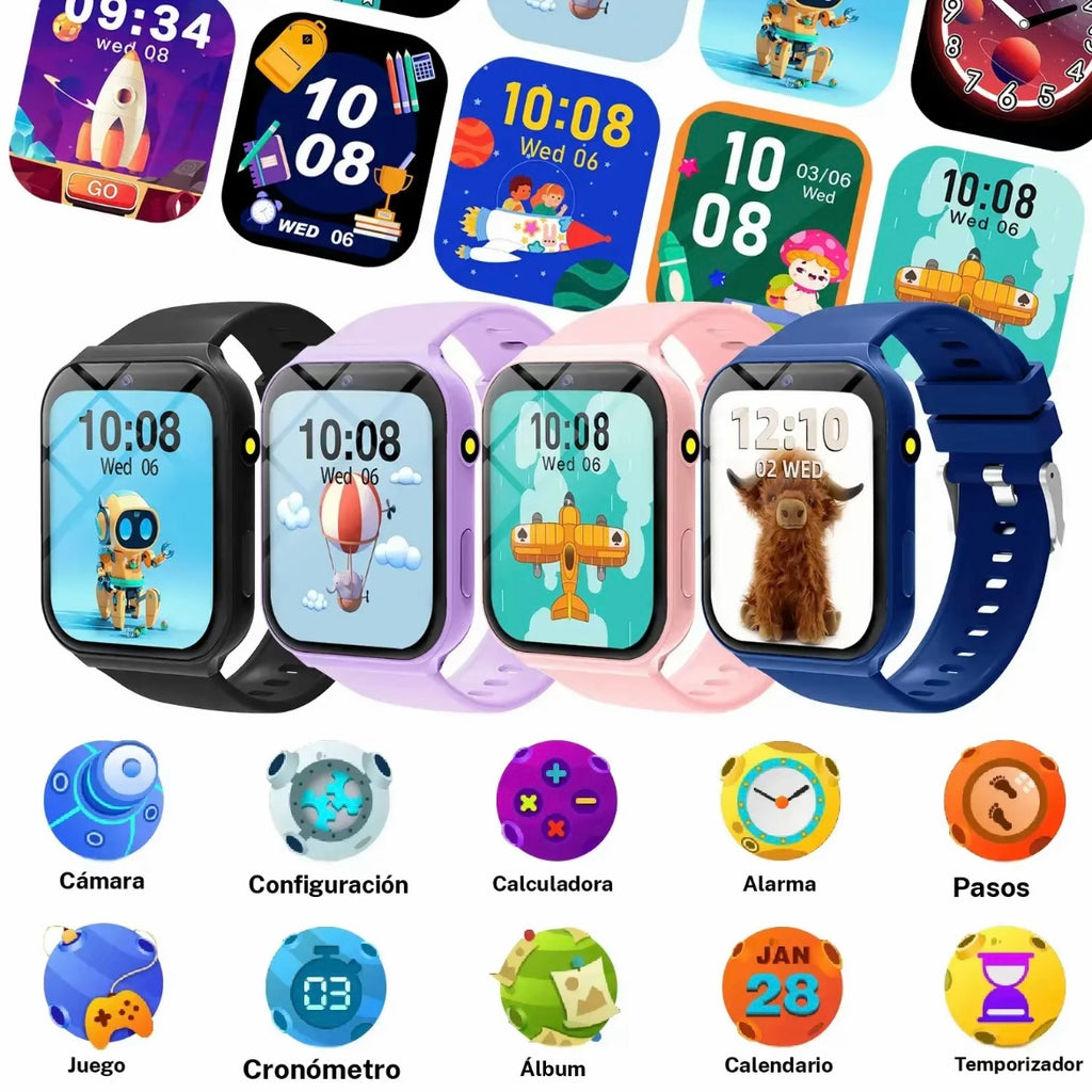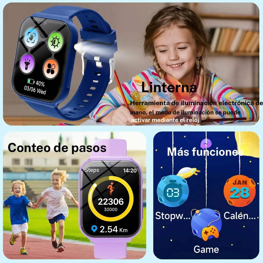 Reloj inteligente para niños y niñas con 18 juegos, cámara frontal, linterna, podómetro y calculadora.