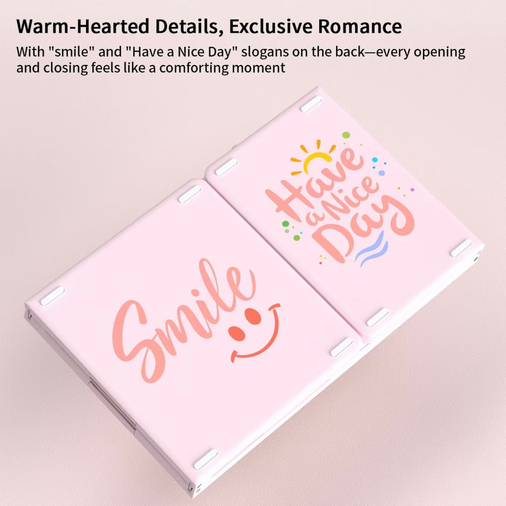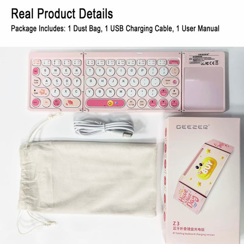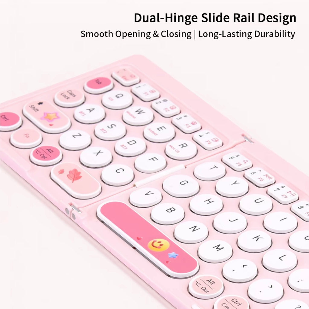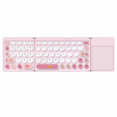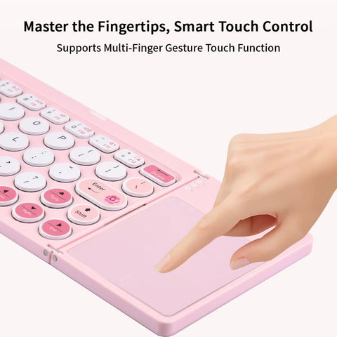 Teclado plegable, teclado Bluetooth con panel táctil sensible (sincronización con hasta 3 dispositivos), tamaño de bolsillo, plegable por tres, para Windows, Mac, Android e ios, color rosa
