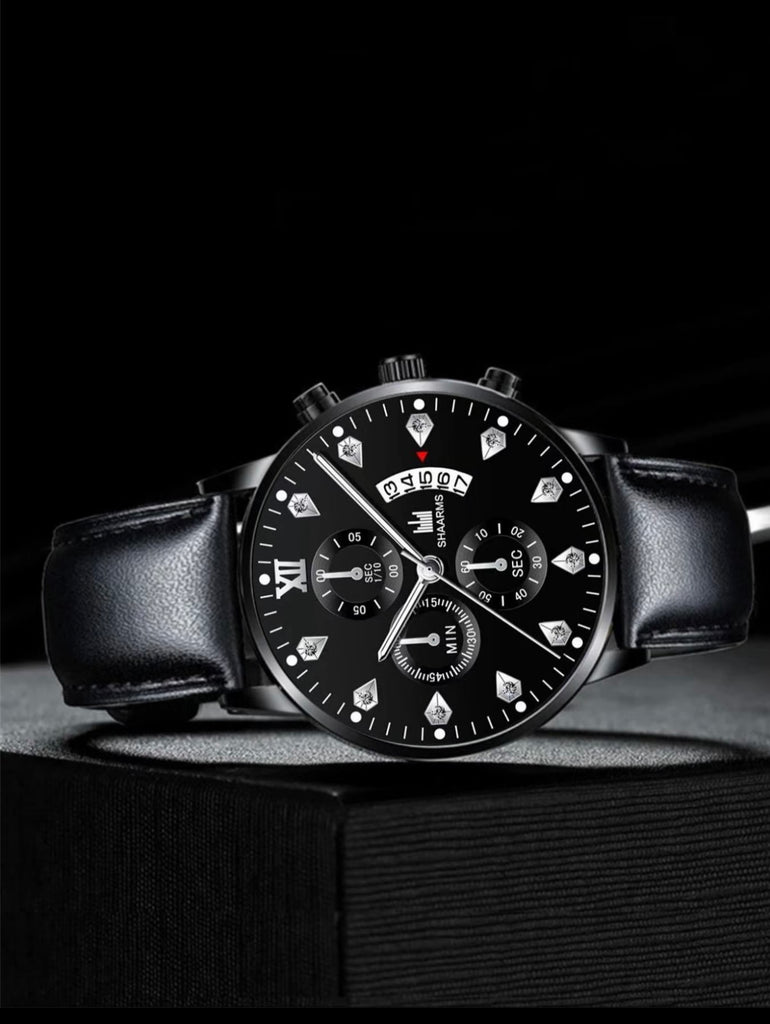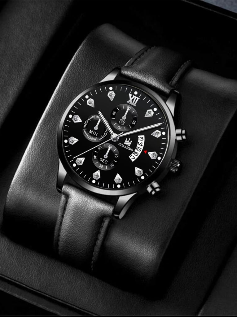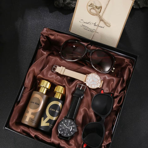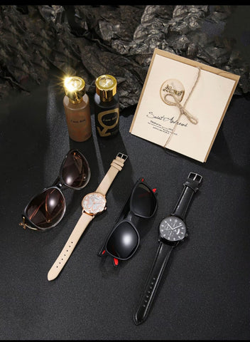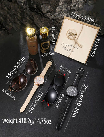 Conjunto de moda empresarial para hombre con reloj de cuarzo de esfera redonda colonia que incluye gafas de sol, reloj; conjunto moderno, combinable y exquisito ideal como regalo de cumpleaños.