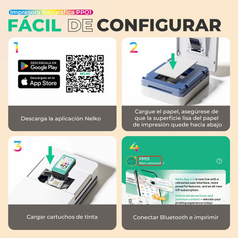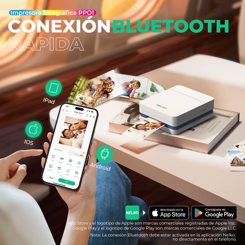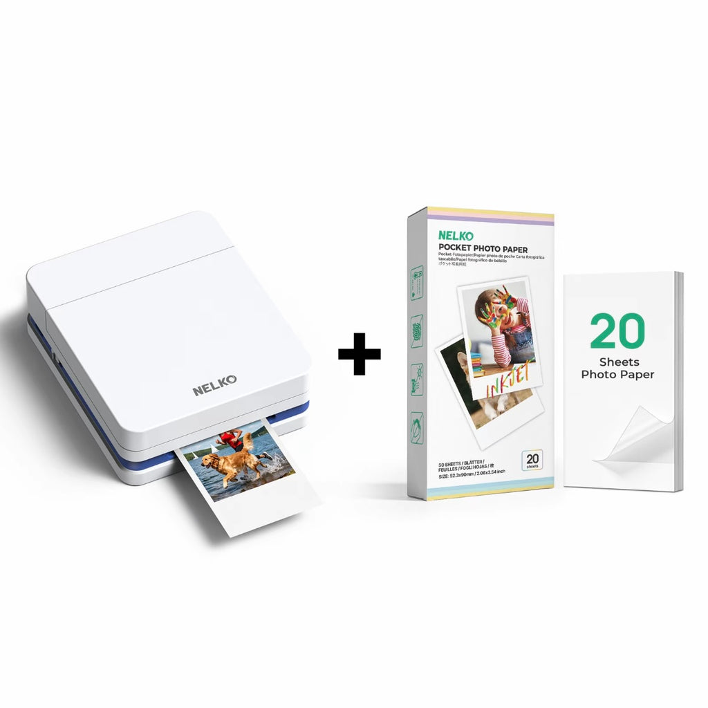 NELKO PP01 Impresora fotográfica portatil con tecnología de inyección de tinta, 20 hojas de papel, compatible con iOS y Android a través de Bluetooth, perfecta para viajes y la escuela, impresora fotográfica de bolsillo, Pocket Photo