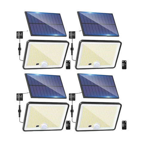 Luz de tira led solar para exteriores con control remoto, toco con sensor de movimiento de 342 led, luces solares impermeables IP65 para jardín