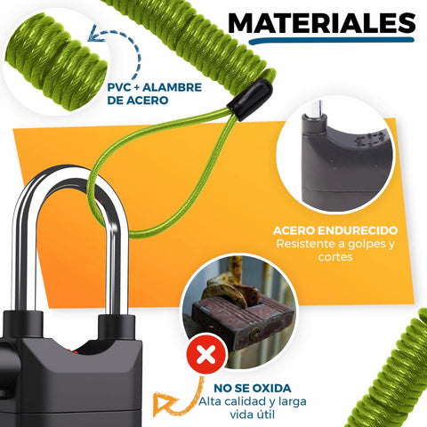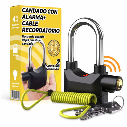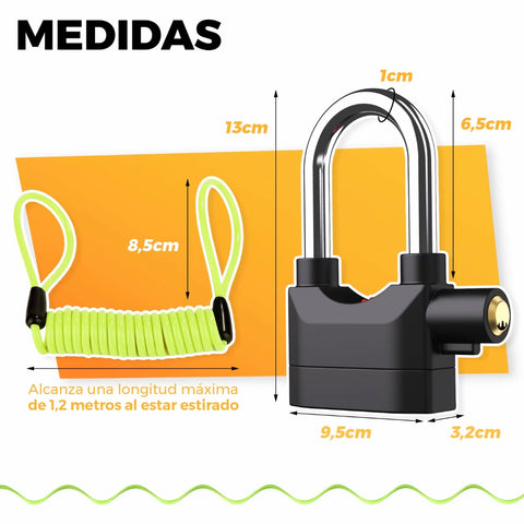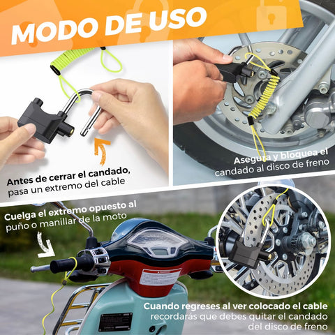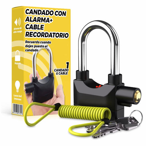 Candado con Alarma - Candado Moto o bicicleta Alarma de 110 db con Cable Recordatorio