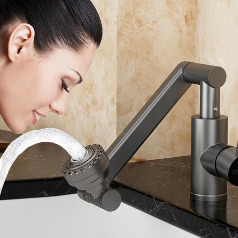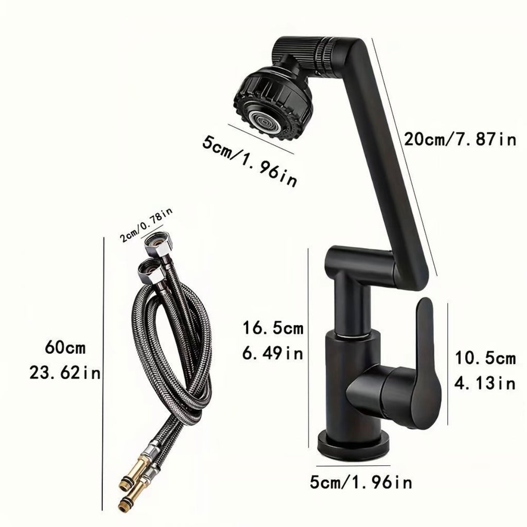 Grifo de lavabo giratorio 1080°, altura ajustable, con un solo mango y un solo agujero, con 2 patrones de boquilla y 2 mangueras, grifo giratorio para lavabo