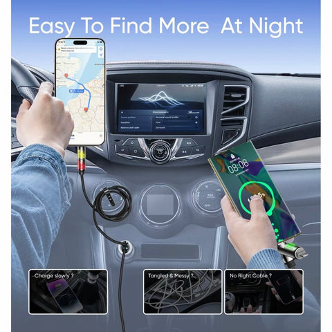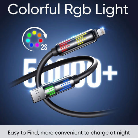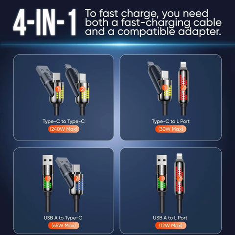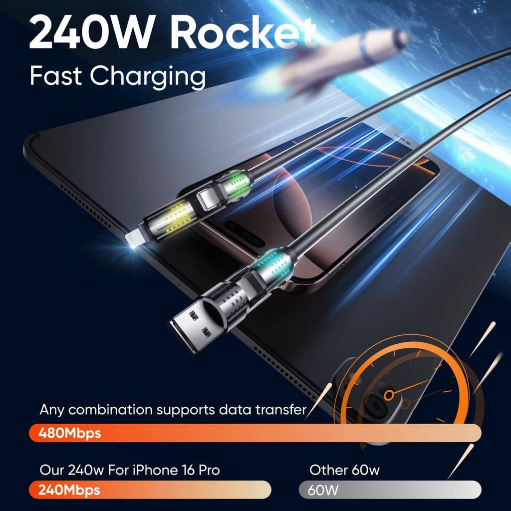 MAGIC JOHN Cable 4 en 1 de carga rápida 240W con luz RGB - USB-C/ USB-A a Lightning y USB-C, compatible con iPhone, Samsung, Huawei