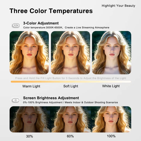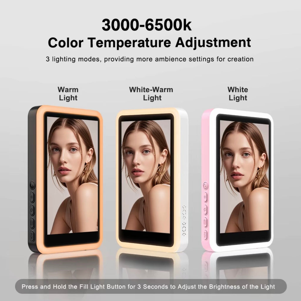 La nueva versión mejorada del monitor de selfies inalámbrico Vlog tiene una pantalla magnética, tres ajustes de color, reproducción de sonido, una pantalla lE integrada y una cámara trasera, lo que lo hace adecuado para transmisión en vivo.
